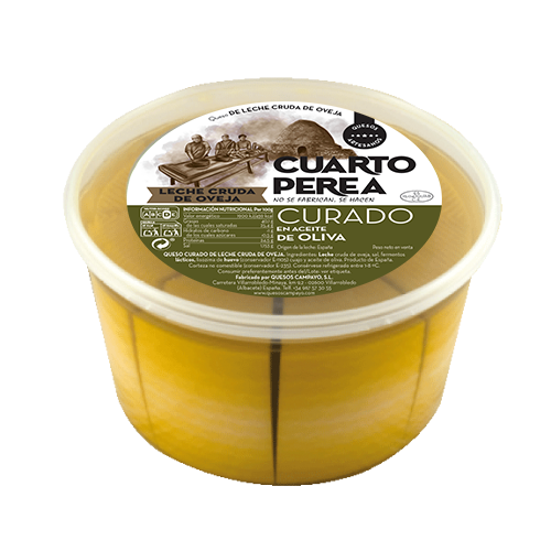 QUESO CURADO DE LECHE CRUDA DE OVEJA. Ingredientes: Leche cruda de oveja, sal, fermentos lácticos, lisozima de huevo (conservador E-1105) y cuajo animal. Corteza no comestible (conservador E-235).